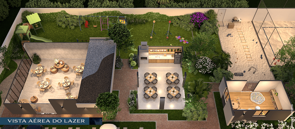 Áreas de lazer para todas as idades fluem em harmonia. Convivência, descanso e diversão acontecem no mesmo compasso, transformando a rotina em bem-estar e trazendo você sempre mais perto da natureza e de quem ama.